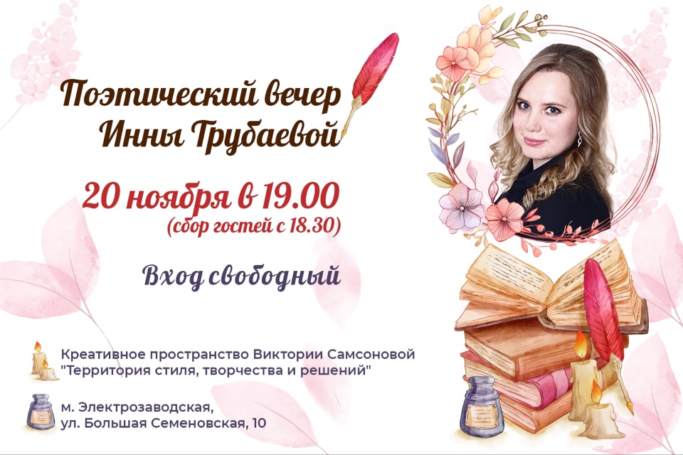 Поэтесса Инна Трубаева приглашает на свой творческий вечер!