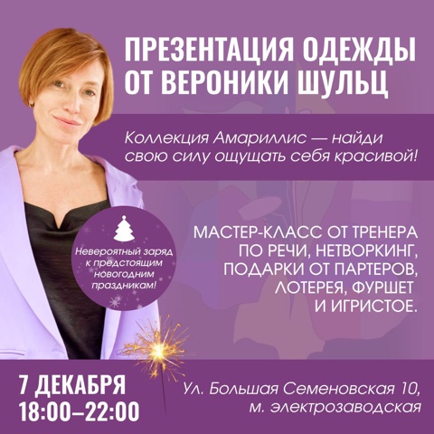 7 декабря 2024 года состоится презентация моей новой коллекции одежды «Амариллис». Встреча пройдёт в уютном пространстве @by_vittoria_samsonova.